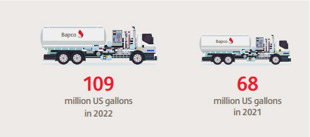 Accordingly, Bapco’s Aviation Jet A1 fuel sales in 2022 were up 62%, reporting total sales of around 109 million US gallons in comparison to 2021, with total sales of around 68 million US gallons.