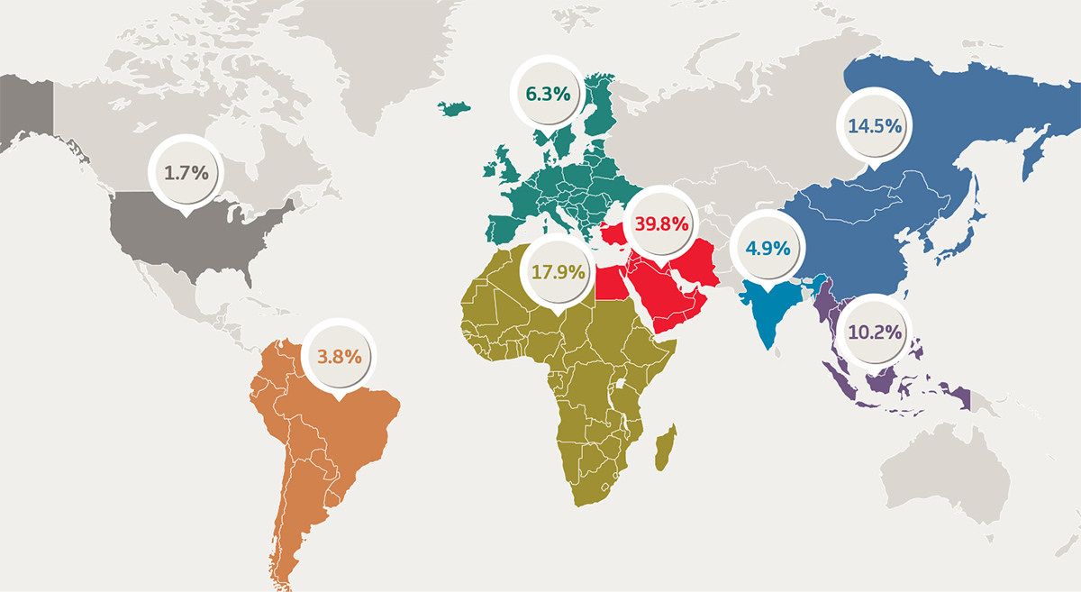 Middle Eastern countries were the biggest export destinations and accounted for 39.8% of export destinations, followed by Africa 17.9%, the Far East 14.5%, Southeast Asia 10.2%, Europe 6.3%, India 4.9%, South America 3.8%, and the USA 1.7%.